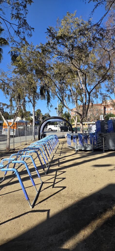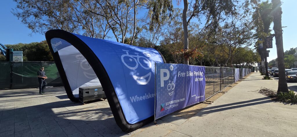 Expo Parc hat auf Wheelskeep-Parkplätze gezählt, um die Mikromobilität mit Fahrrädern oder Rollern zu aktivieren. 300 Fuß vom Coliseum-Stadion entfernt hat Wheelskeep einen Bereich eingerichtet, in dem Fahrer ihre Fahrräder reparieren lassen können.